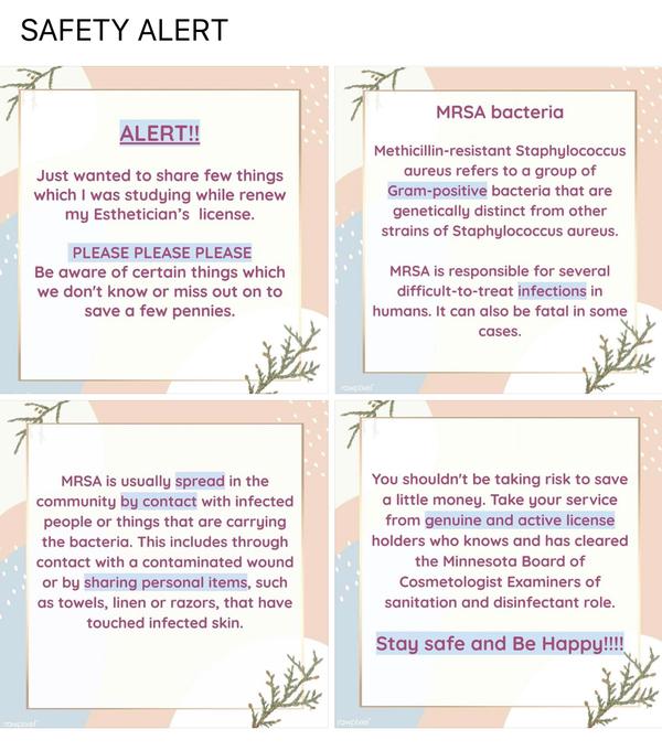 Cleanliness and services are followed according to MN Board of Cosmetologist and WHO.