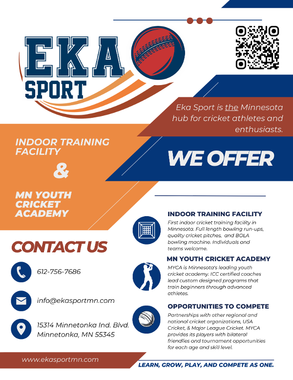 MYCA warmly welcomes children of all skill levels and ages, regardless of gender, spanning from 7 to 19 years old and beyond. Nestled within the state-of-the-art Eka Sport indoor Cricket facility in Minnetonka, we offer unparalleled experiences and a vibrant atmosphere for cricket enthusiasts. Drop by today to explore the world of cricket with us!